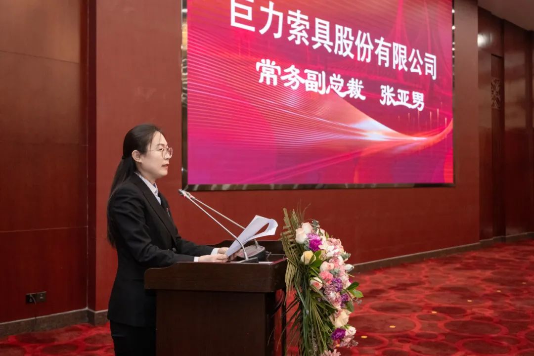 面對未來市場的挑戰和機遇,常務副總裁張亞男表示,希望與供應商同心同力,打造命運共同體,并肩作戰、共謀發展。針對供應質量在質量閉環管理、供應商資質能力、技術工藝、產品交付、質量意識提升等方面提出指導與倡議。倡導雙方加強密切聯系,依托巨力索具市場平臺優勢、品牌優勢,聯合供應商在各領域專業優勢,攜手共進,實現合作共贏、利益共享。