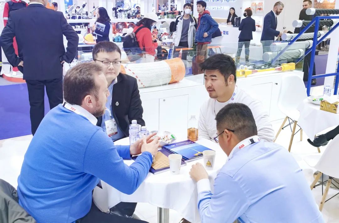 總裁楊超蒞臨現(xiàn)場(chǎng)指導(dǎo)工作并與客戶密切交談,聽(tīng)取了國(guó)內(nèi)外客戶的市場(chǎng)反饋,并與客戶交流巨力索具智能化、數(shù)字化技術(shù)在海洋領(lǐng)域的應(yīng)用與成就,深層次探討行業(yè)發(fā)展趨勢(shì)與合作方向。