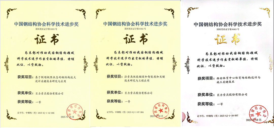 技術創新再獲權威認可!巨力索具榮膺三項中國鋼結構協會科學技術進步獎一等獎
