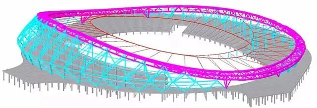 項目索結構為首創的車幅式單-雙層混合索網體系,共計42榀。其中西側看臺上方屋面較高,采用單層索網,共設計16榀徑向索;南北側及東側看臺上方為雙層索網,雙層索網內拉環間設置撐桿,共設計26榀徑向索,巨力索具承擔了環索和環索索夾的設計及生產工作,其中,由于該項目的索結構是單雙層索網的混合結構,索夾的設計及生產難度大,部分索夾的最大不平衡力超過750噸,在體育場館建設中屬于最大的。